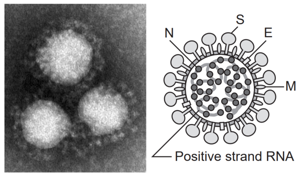 +)国立感染症研究所 「コロナウイルスとは」のページ(www.niid.go.jp/niid/ja/kansennohanashi/9303-coronavirus.html リンク切れ)からコロナウイルスの写真・図コピー。