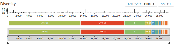 1月にチャイナから登録されたNC_045512というサンプルにアクセス。