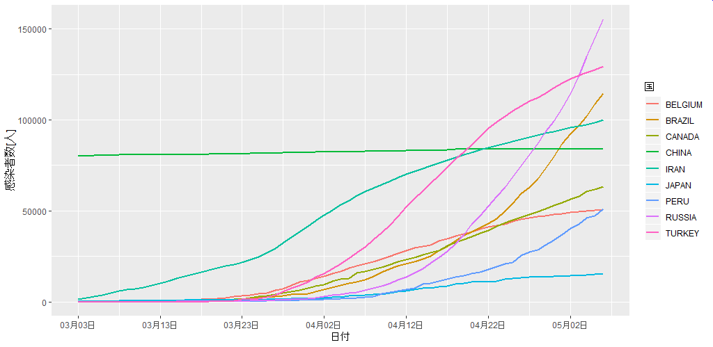 アジアの国々はイランなどで増えているが、比較的抑えられているほう。