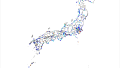 凡例はないけど10m/sおきに色分け。気象官署155地点のうち富士山の風速データだけない。