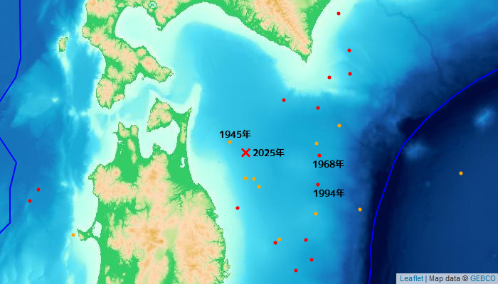 | 2025/12/8 | 青森沖 | 6強 | M7.5 | 54km |