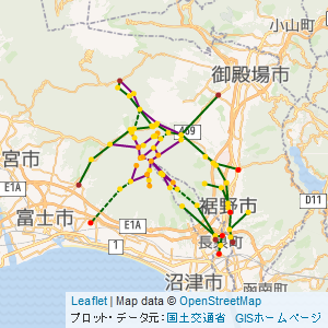御殿場 … 岩波 - 裾野 - 長泉なめり - 下土狩 … 沼津
