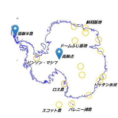 昭和基地のプロットクリックで、東南極 東経0°-東経80°の主に沿岸部のページへ。