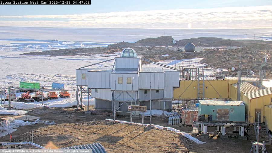 ▼ 国立極地研究所の昭和基地ライブカメラ(www.nipr.ac.jp/webcam/)から。2025-12-28 04:47