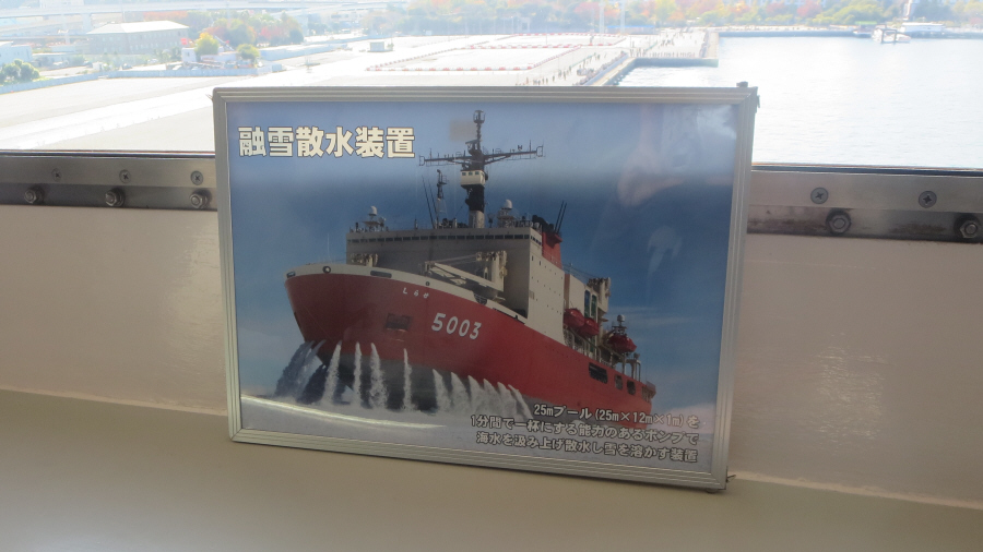 ▼ 氷を融かしながら進むしらせ。しらせ操舵室にあった写真